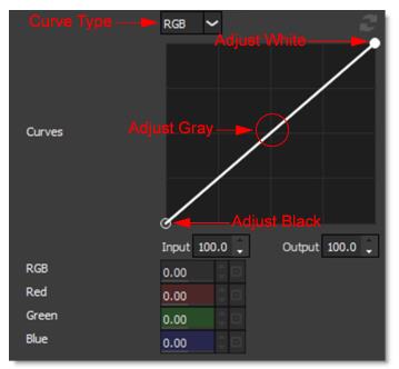 • Select RGB, Red, Green or Blue from the Curve Type pop-up menu.