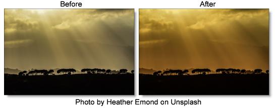 Dual Gradient applies two photographic filters to the image which are blended together with a gradient. Presets for your favorite Color Gradient filters are provided as well as the ability to create custom colors.