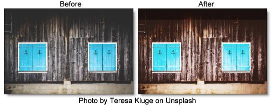 Grain simulates film grain with control of the size, softness and intensity. In addition, a Film Response parameter controls where you will see grain in the image. Go to the