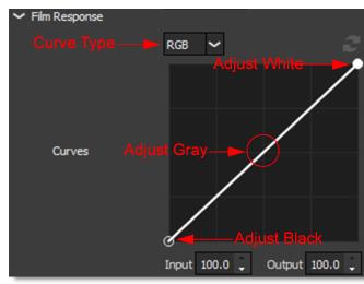 Controls the RGB film response curve. If you are using a black and white preset, the grayscale film response curve will be adjusted.