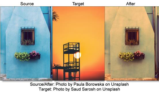 The color and brightness of the source image are analyzed and applied to your target image.