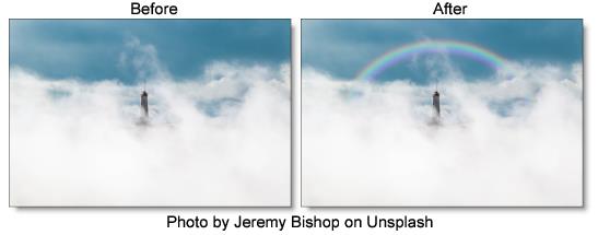 The rainbow is added to the image using a normal composite function.