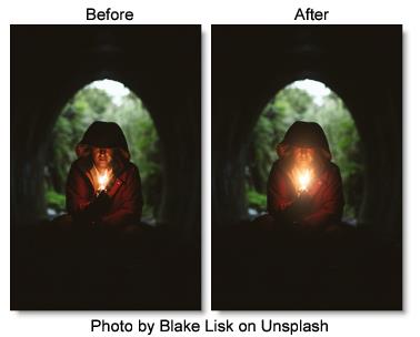 Light can be added to a scene where none existed before. A complete set of light source controls allow you to adjust the light just as you would at the time of shooting.