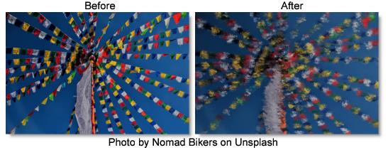 If enabled, transparent borders are added to the image before processing. This allows the result to include soft edges beyond the original image size. When off, the effect only occurs within the frame and the result will retain an edge at the borders.