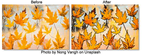 Generates a cartoon look. Finds the edges in the image and draws new outlines for those edges. Smooths the colors of the areas between the edges, and optionally posterizes the colors into fewer color values.