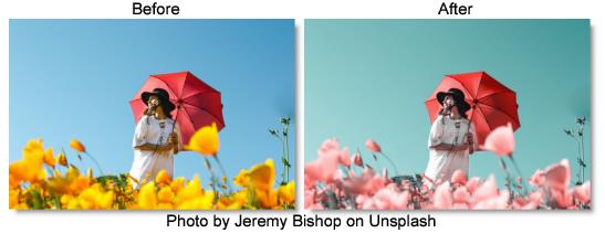 Reorders the RGB channels of the image. Allows mapping any source channel into any output channel, with scaling and offset for each output channel.