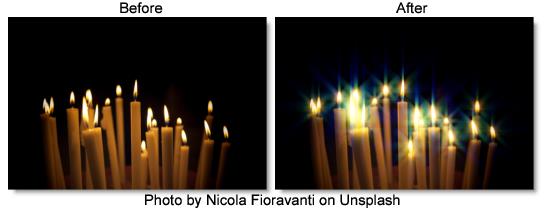 Generates star shaped glints at locations where the image is brighter than the threshold.