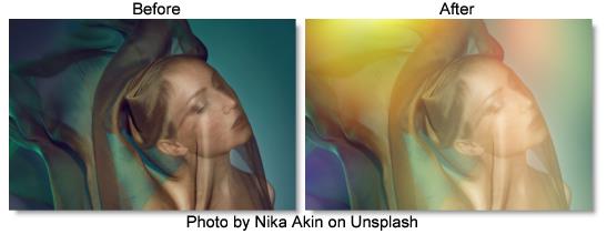 The light leak is blended with the image using a function that helps prevent overly bright results.
