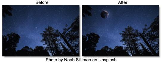 If you want to make a complete sky image with the moon and a colored sky, you can put the moon in a blue sky by setting Sky Color to blue. This will also tint the moon toward the sky color.