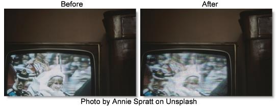 This causes the image to shift horizontally in a semi−random way, simulating a TV with a bad horizontal hold circuit or a signal not strong enough to engage the horizontal hold.