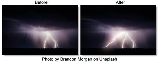 Adds the lightning to the image. This gives brighter glows over light backgrounds.