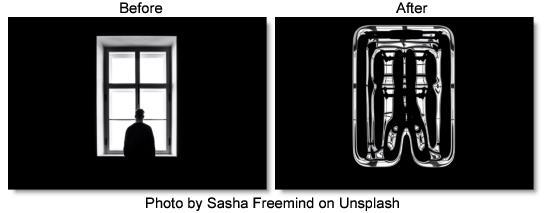 Warps the image based on its gradient. By default, brighter areas are puffed out and darker areas are shrunk.