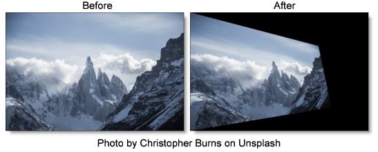These 4 parameters: Crop Top, Crop Bottom, Crop Left, and Crop Right select a rectangular subsection of the image. If the Wrap parameters are set to No, the exposed borders will be transparent. If the Wrap is set to Tile or Reflect, the image is wrapped on the newly cropped borders to fill the frame. This can make it easier to avoid artifacts due to distorting an image with bad edges.