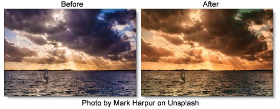 Sunset applies three photographic filters to the image which are blended together with a gradient. Presets for your favorite Color Gradient filters are provided as well as the ability to create custom colors.