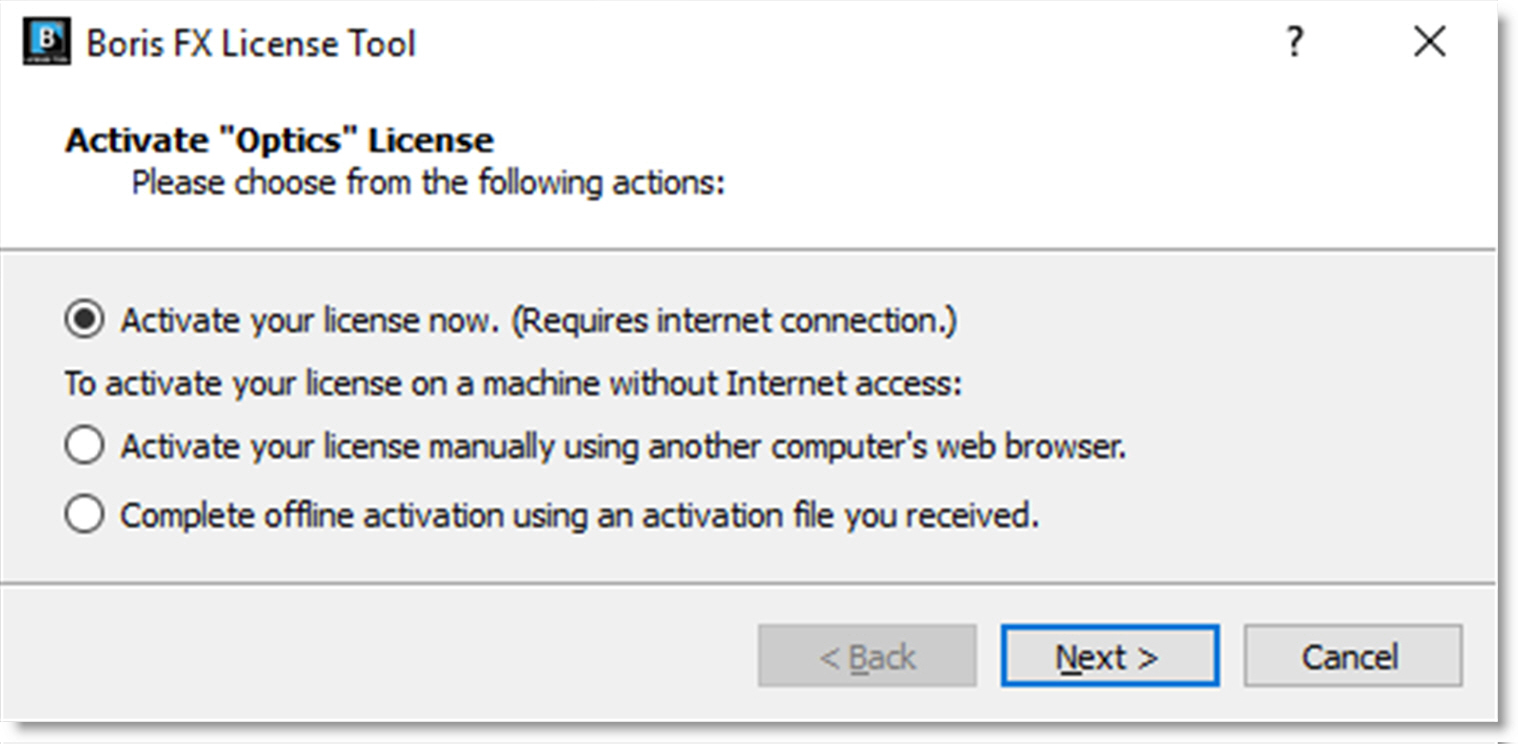 If your machine is not connected to the Internet or you are behind a firewall, use the Activate your license manually option.