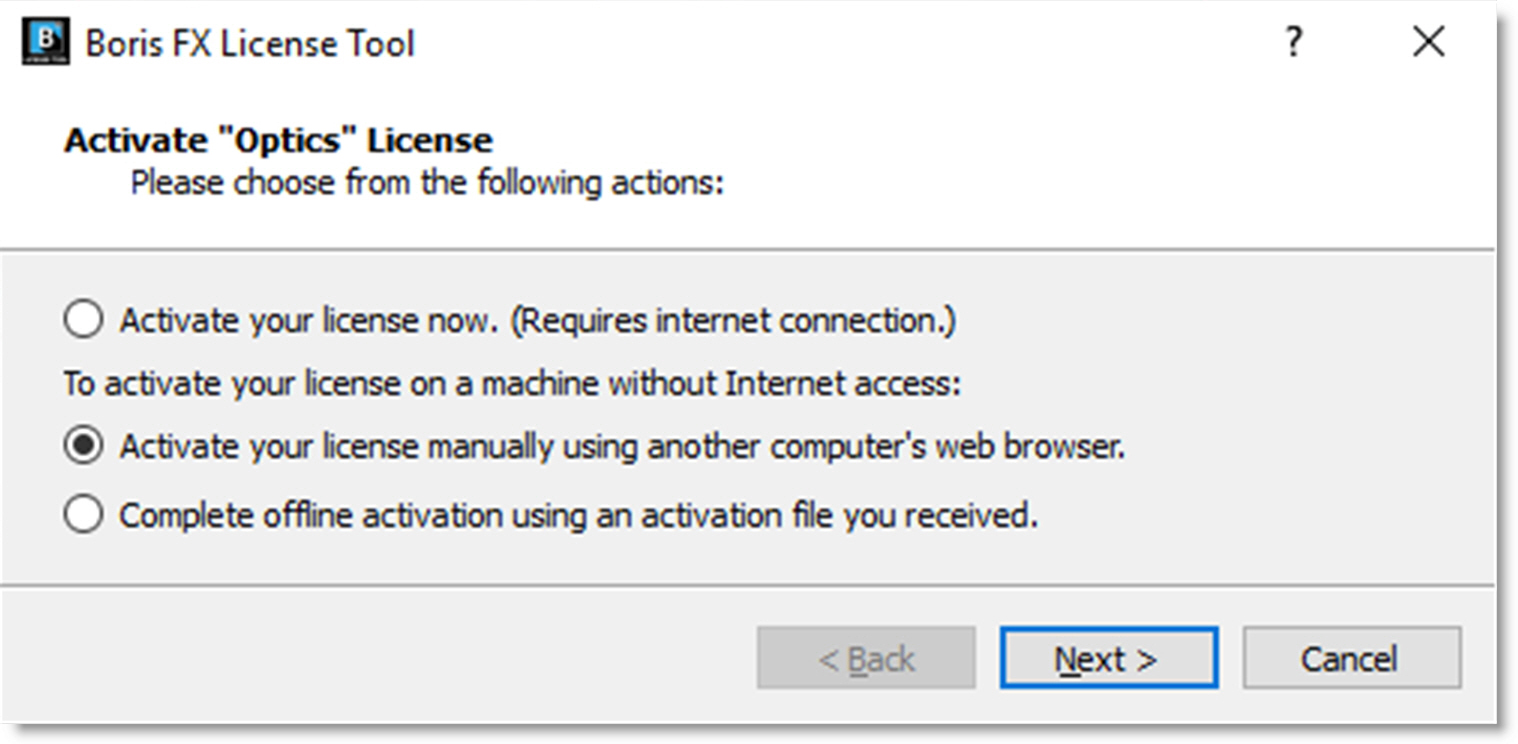 3 Choose Activate your license manually using another computer’s web browser and press Next.