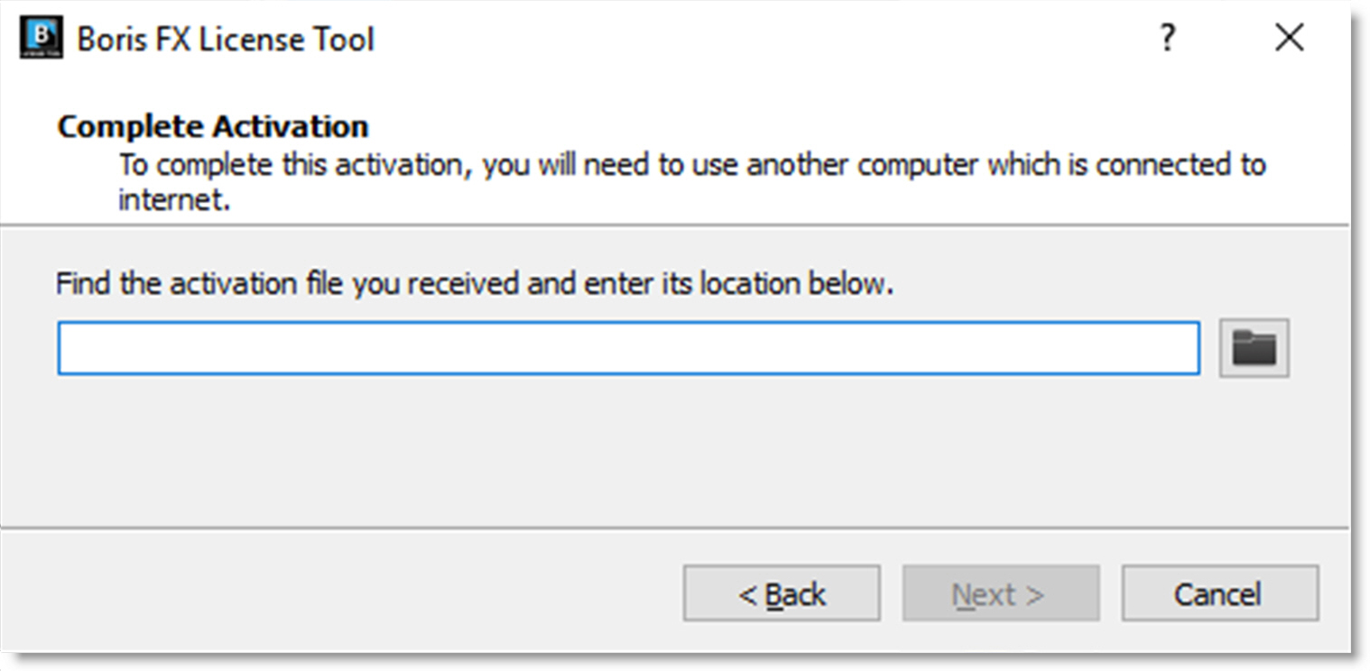 11 Save the activation file it returns (via download or email), and copy that back to the offline machine.