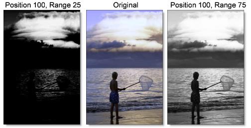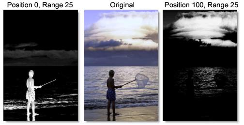 Using the Luminance extraction method, a higher Position value shows more white values from the original image as white values in the mask. A lower Position value shows more black values from the original image as white values in the mask.