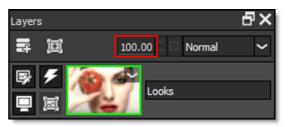 5 Drag left or right on Layer Opacity’s numeric field to adjust the value.