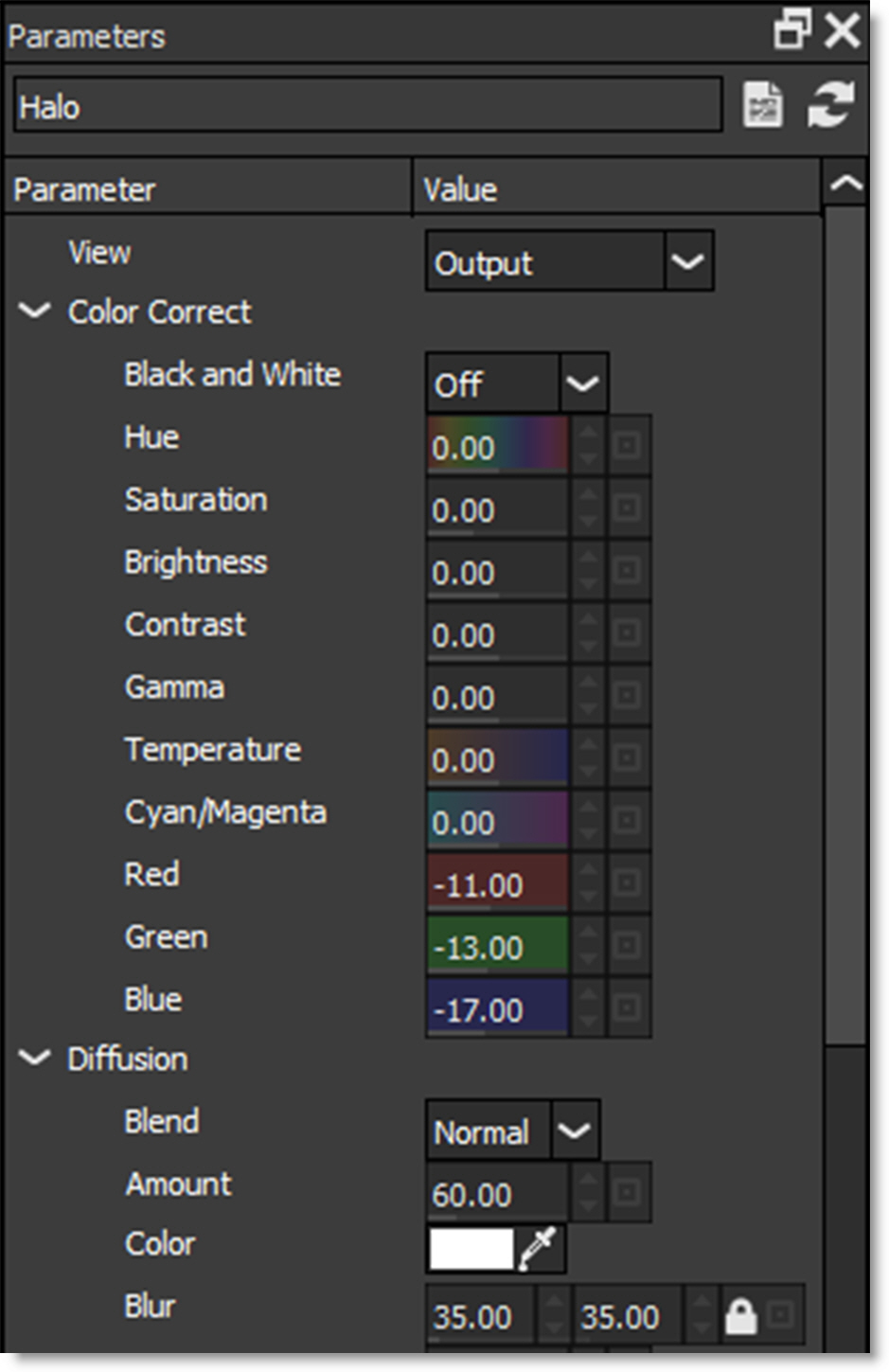 Adjusting the parameters will update and change the image in the Viewer. You can also set the opacity of the filter using the Layer Opacity control in the Layers window.