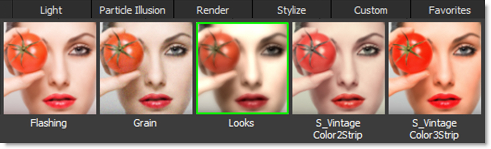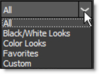 1 Click on the Film Lab category in the Filters window and select the Looks filter.