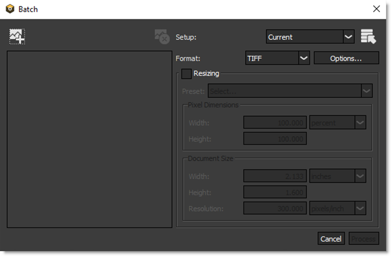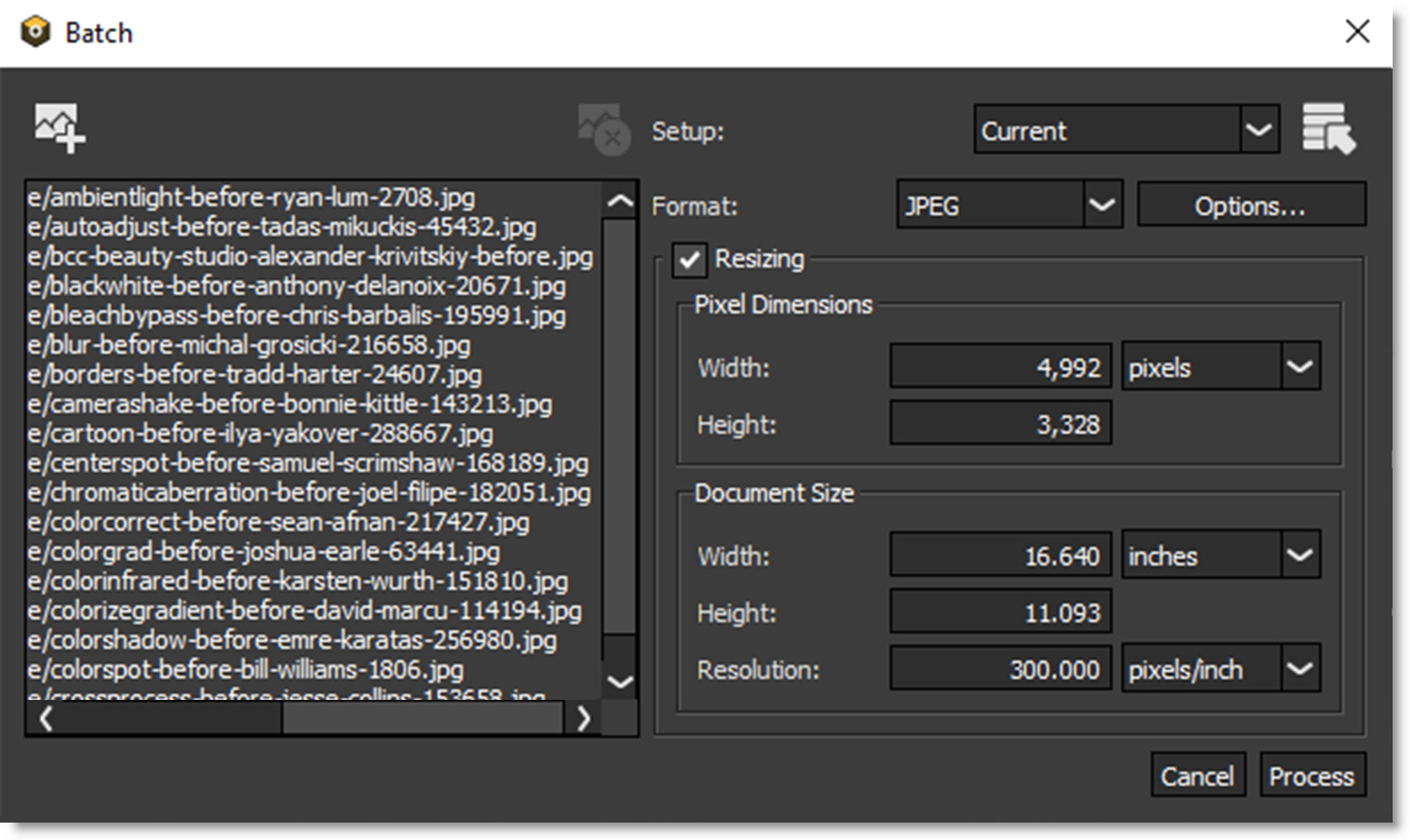 In addition, if you activate and set the Resizing options, the entire list of files will be resized.