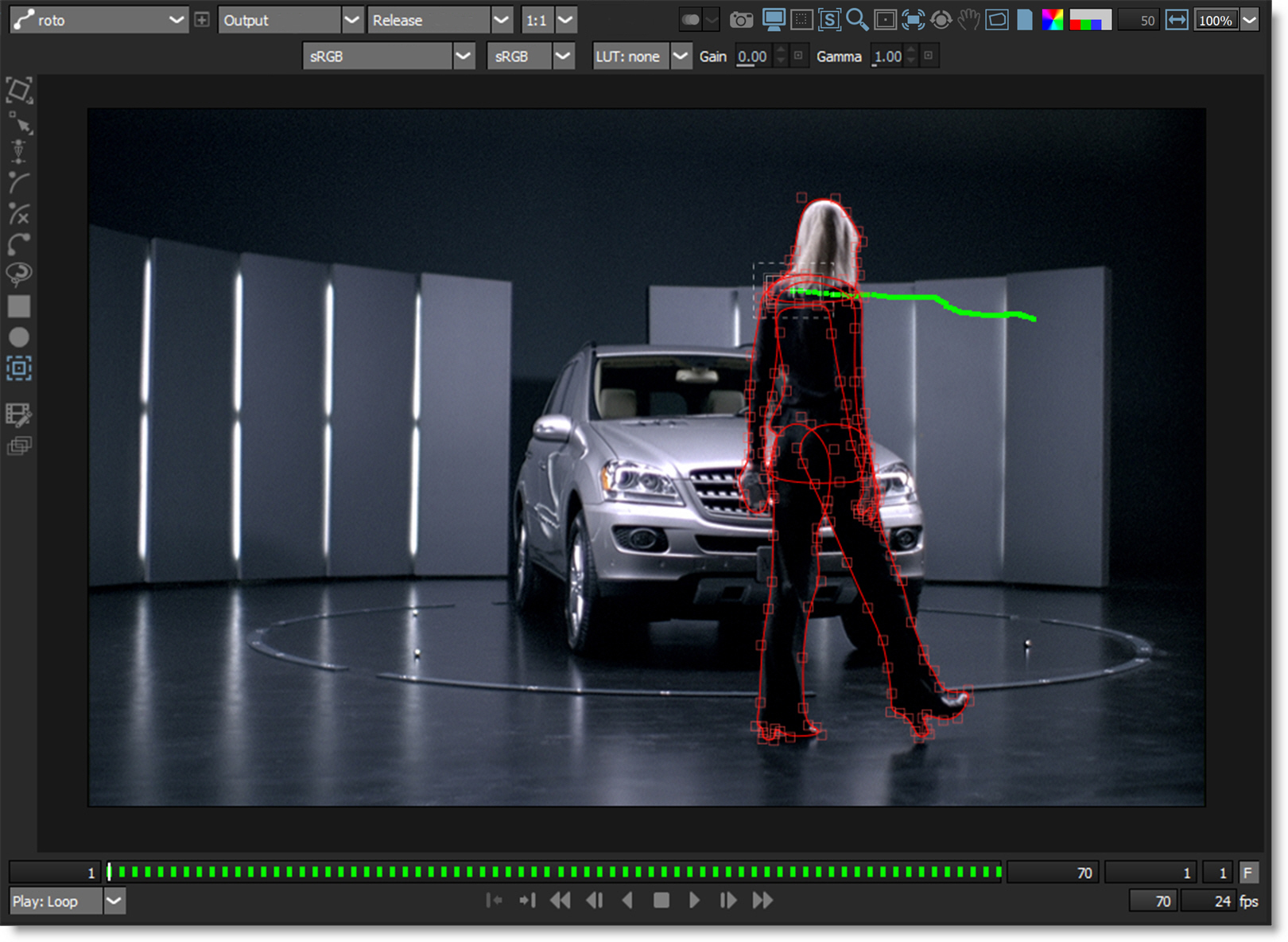 Silhouette’s Roto allows you to quickly create sophisticated animated mattes using B-Spline, Bézier or X-Spline shapes. Intelligent design and easy-to-use tools, such as variable edge softness on a point by point basis and realistic motion blur, assist you in creating complicated shape animations. Integrated motion tracking makes the normally tedious task of rotoscoping a breeze.