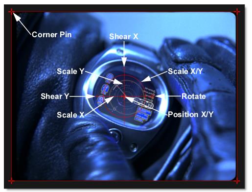 Drag crosses on corners of image | Corner-pins the image |