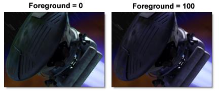 Adjusts the contrast of the foreground. Positive values increase contrast, negative values decrease contrast.