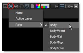 1 Click the Stabilize icon above the Viewer and choose either the Active Layer or a layer from the list. Available layers are organized by node.