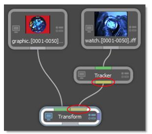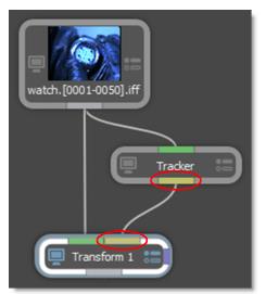 3 Connect the Tracker’s Data output into the Transform node’s Data input located at the top right of the node.