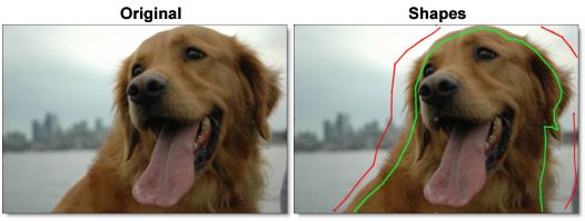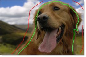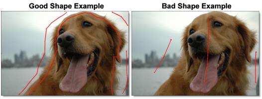 A good Open Shape technique is to draw an inner and outer outline around the object you are extracting using open shapes. Shapes should be near the boundary of the foreground or background, but not right up against the edge. Also, if the foreground or background has varying colors, the shapes should cross over these colors.