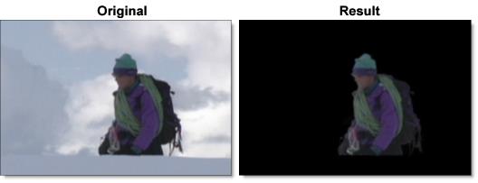 In the generated matte, white is foreground, black is background and any gray areas in between represent a level of transparency. If the matte is not acceptable after processing, you can either adjust the shapes or add additional shapes near the region where the matte is not accurate.