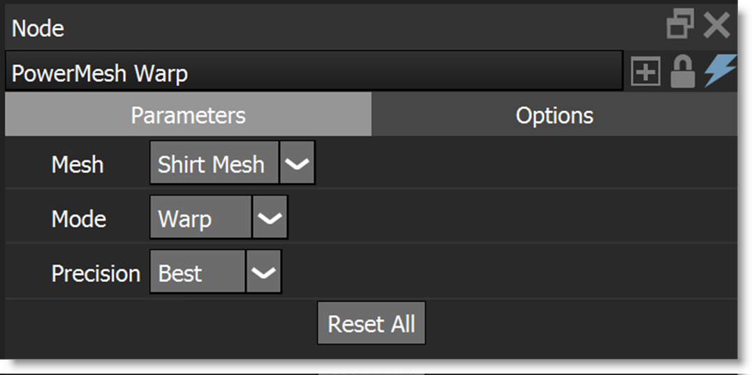 9 Single-click in the center of the PowerMesh Warp node to view and edit it.