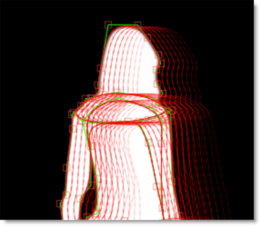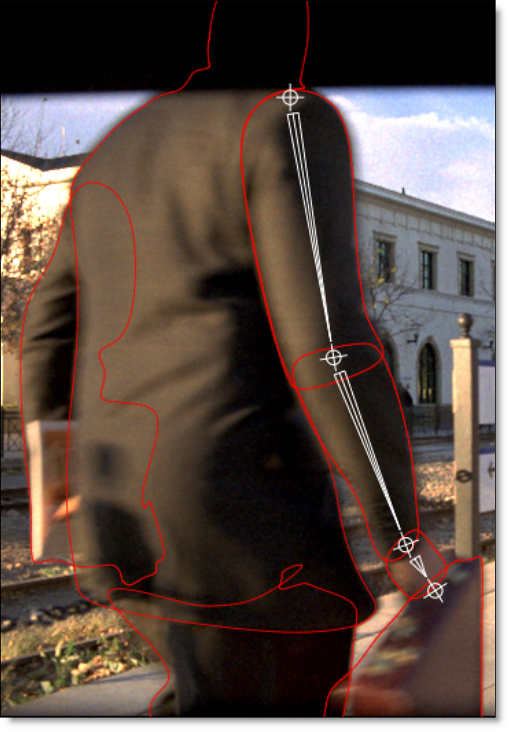 By editing your shape at various frames in the clip, Silhouette animates the shape in between those keyframes. This saves you work. Make as few keyframes as possible, but as many as needed so the shape properly follows the object that you are rotoing. For instance, on a 80 frame clip, start by adding keyframes at 1, 20 and 40. If more animation is needed, add keyframes at 10 and 30. Get the idea? Creating too many keyframes will cause the shape to jitter or chatter.
