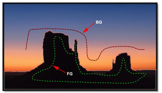 1 Define foreground areas by Shift-click-dragging.