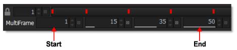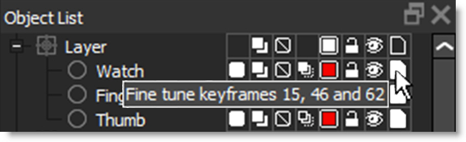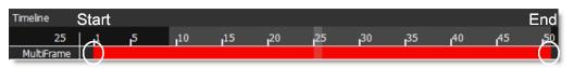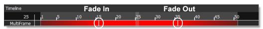 As the shape is edited on different frames, a keyframe marker is shown in the Timebar to provide a visual display of where there are shape keyframes. The color of the markers is determined by the shape color. If multiple selected shapes have a keyframe on the same frame, the most recently selected object's color has precedence.