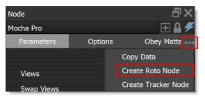 Mocha shapes and layers can also be brought into Silhouette using the Mocha Pro node’s Action menu. This menu creates a Silhouette Roto node from the Mocha Pro project without having to go into the Mocha UI.