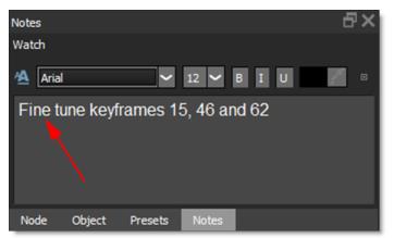 3 Click in the Notes tab text editor and type your note.