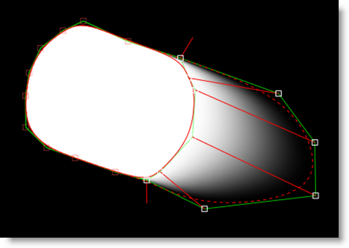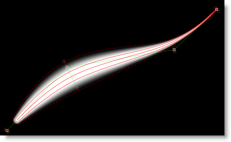 In contrast to Béziers, B-Splines don’t use tangents and are created by only using control points. The position of the points, their intensity settings as well as their proximity to each other determine the curvature of the shape.
