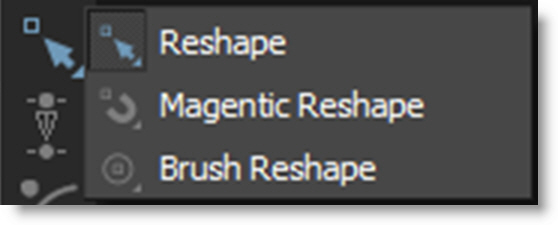 Reshape modifies shapes by adjusting their control points and tangents.