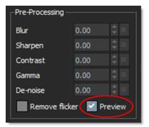• Use the Blur, Sharpen, Contrast, Gamma, De-Noise or Remove Flicker pre-processing parameters.