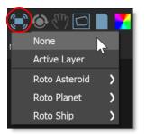 16 If you want to use Stabilization, click the Stabilize icon above the Viewer and choose either the Active Layer or a layer from the list. Available layers are organized by node.