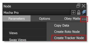 2 Mocha tracked layers can also be brought into Silhouette using the Mocha Pro node’s Action menu. This menu creates a Tracker node from the Mocha Pro project without having to go into the Mocha UI.