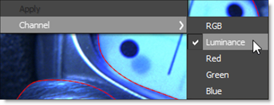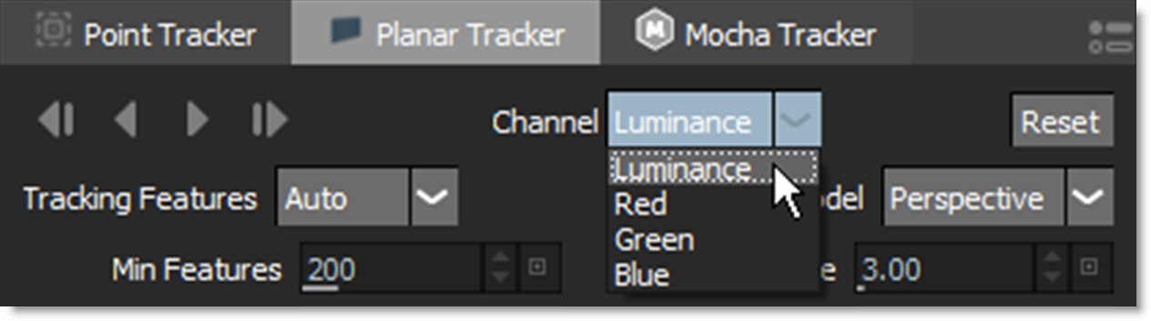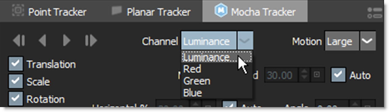 • Change the Channel parameter from RGB to Luminance, Red, Green or Blue and re-track. The Channel parameter determines which image value the tracking algorithm uses.