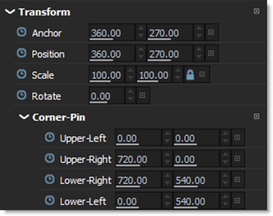 7 Set Transform keyframes for the selected layer at the last properly tracked frame by enabling the Animate icon for the layer parameters that you will be adjusting.