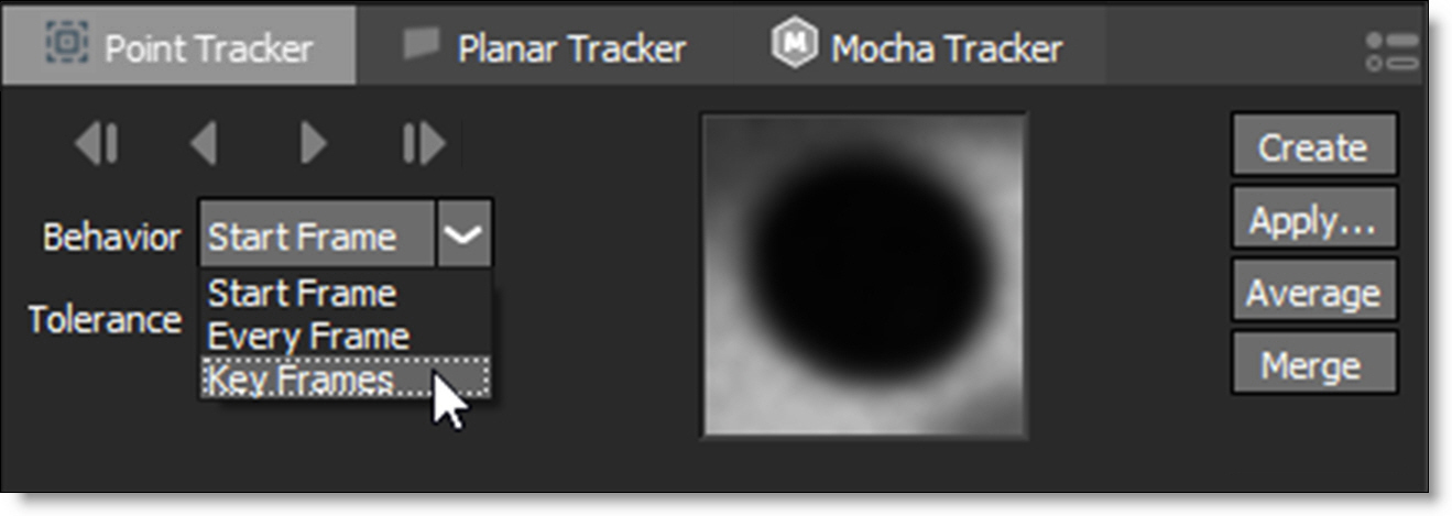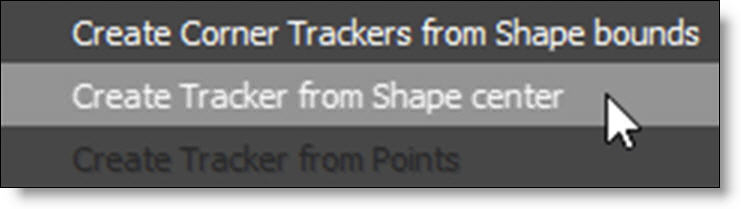 • You can use the same technique as in the previous tip, but with the following differences. Create a shape around the feature that you would like to track. Go to various frames throughout the clip and adjust the shape to match the feature. Select the Tracker tool and right-click on the shape. From the pop-up menu, select Create Tracker from Shape Center. A tracker is automatically created around the center point of the shape and any shape keyframes are automatically applied to the tracker. In the Tracker window, change the Behavior to Key Frames. The tracker Match Area will now use these keyframes as a reference while tracking.