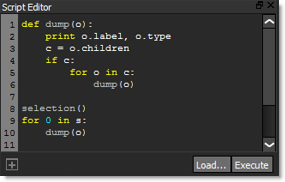 To use the Script Editor, press the Execute button to run the script and the Console will display the results if the script prints anything. While the editor has focus, Alt-Enter will execute the script as well.