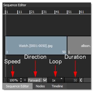 Silhouette can perform editing tasks such as cutting, joining, moving, copying, replacing, trimming, retiming and repeating clips in the Sequence Editor. The sequence can then be used as an element in the Trees window.